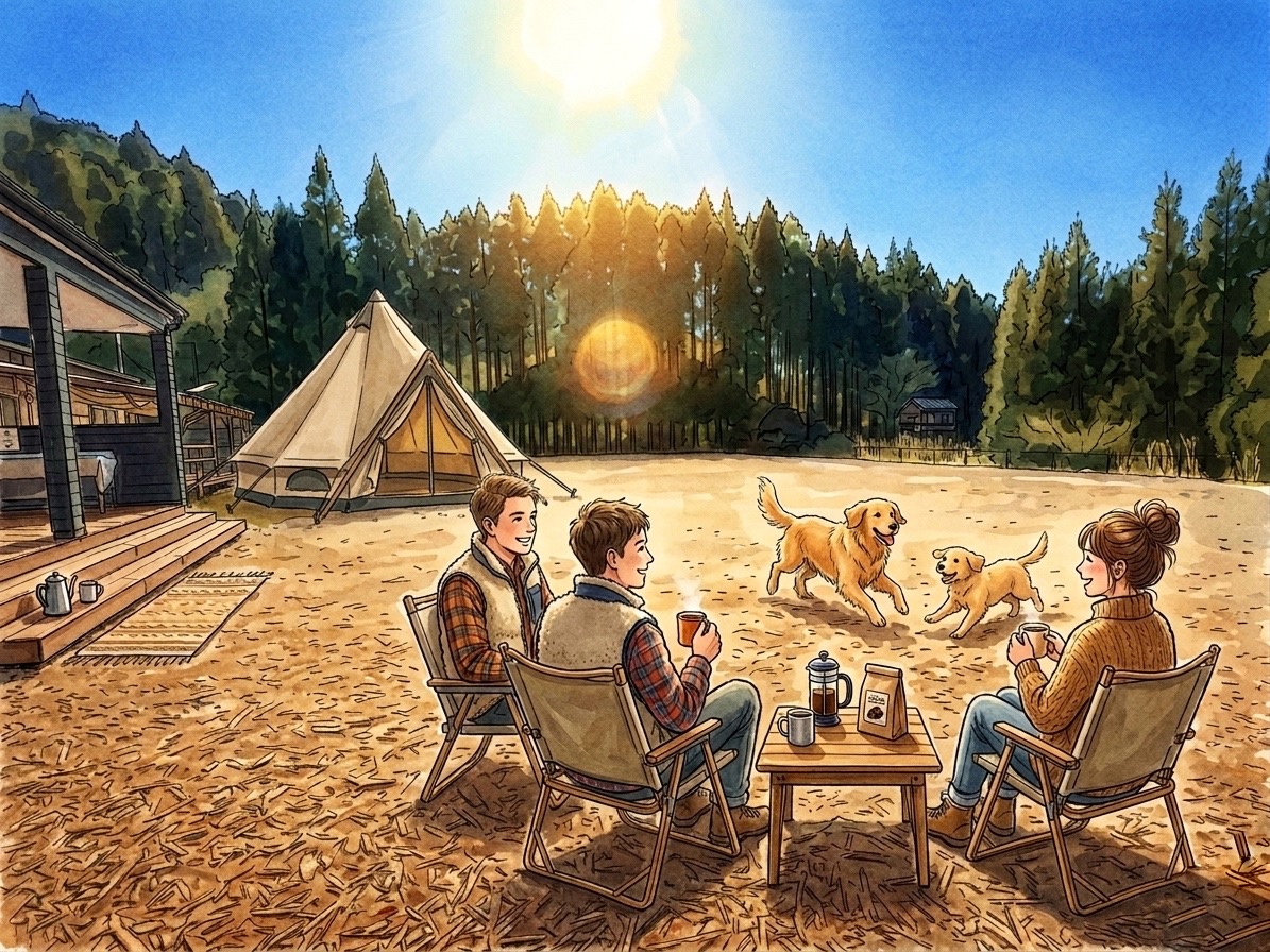 外周がフェンスで囲まれているのでノーリードで思いっきり走り回る愛犬の姿を見ながら、自分たちもゆっくりコーヒーを飲んだり、贅沢な時間を楽しむことができました」