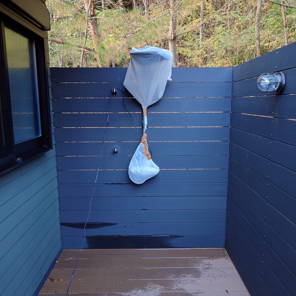 暑い時期には最高な外シャワーでございますが、冬季は凍結してしまいます為、冬季期間は使用禁止とさせていただきます。